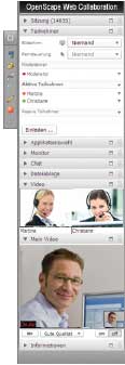 - H.264-Desktop-Videokonferenzen für mehrere Teilnehmer mit Text-, Daten- und Web-Integration